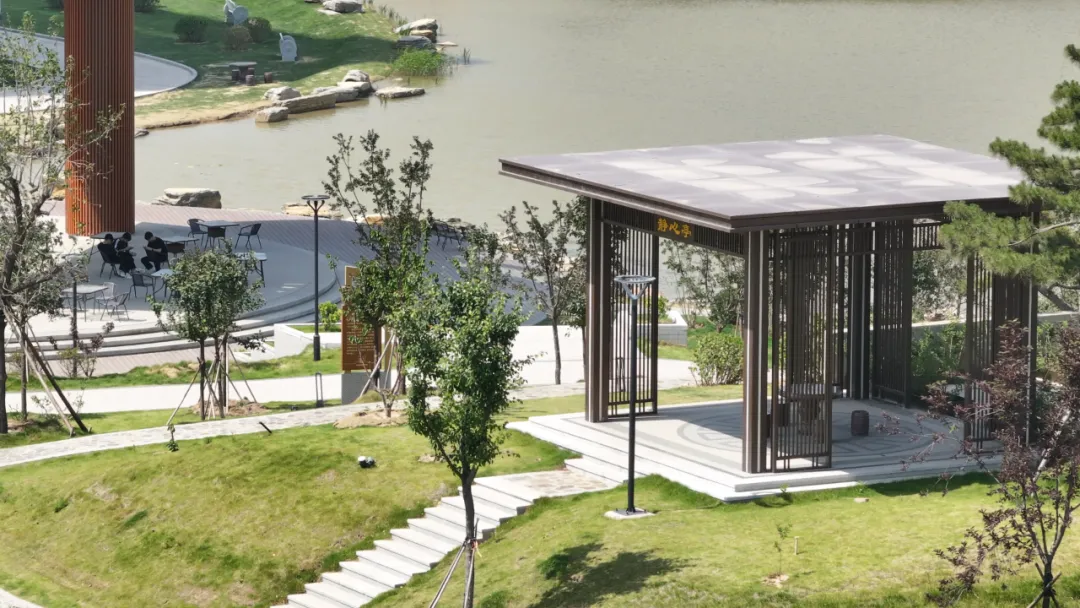 取自《礼记·大学》“知止而后有定,定而后能静”与诸葛亮《诫子书》“非宁静无以致远”。亭内设有石凳,适合晨读、放空,听着德润湖的水声,瞬间抚平内心的浮躁。