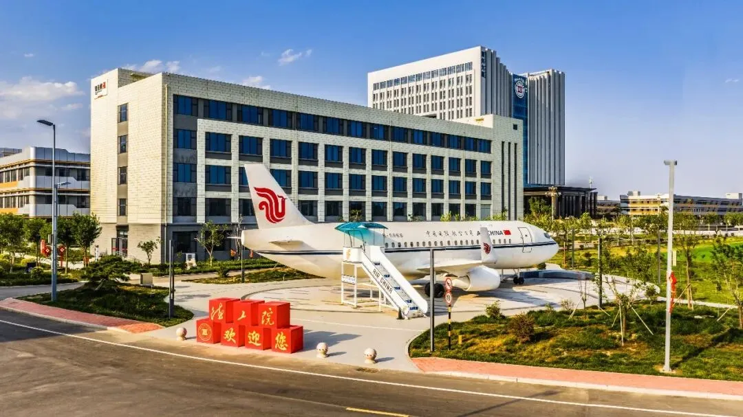停放在实训区的客机超吸睛,能近距离观察飞机外部结构,偶尔还能看到学生在老师指导下进行实训操作,直观感受“知行合一”的职教特色。
