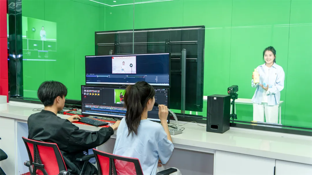 与京东合作共建,有智慧客服、产品优选、直播室等功能区。偶尔能看到学生进行直播带货实训,还能体验“智能选品”“在线客服”等环节,感受“数字商贸”的乐趣。