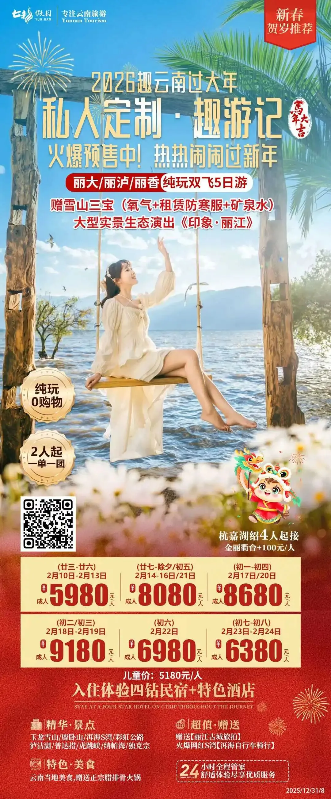 您现在的位置是:首页 > 国内旅游目的推荐 > 正文 国内旅游目的推荐 【春节·云南旅游推荐】丽江、大理、香格里拉、版纳 、腾冲 #滇东南·春节来点不一样 admin2026年01月24日 13:24:58国内旅游目的推荐1 【春节·云南旅游推荐】丽江、大理、香格里拉、版纳 、腾冲 #滇东南·春节来点不一样 转载请说明来源于"旅荐网",部分内容转载自网络,如有侵权请联系qlwl@foxmail.com删除 本文地址:https://www.15386.cn/post/85614.html 上一篇 【地铁游杭州】杭州地铁6号线直达的免费景点! 下一篇 湖州市旅游及美食推荐 相关文章 官方通报“新疆可可托海景区雪豹伤人”事件→ 广东首批!韶关两景点一项目入选 湖州市旅游及美食推荐 【地铁游杭州】杭州地铁6号线直达的免费景点! 贤良祠-什刹海小众景点开放,位于北海北门对过. 塞舌尔旅游推荐 中国最美的6个“AAAAA”景区,去过3个以上此生无憾!争取每年去一个! 收藏!3A级景区里的大学“景点全攻略”来了!逛遍德工,每处都藏着惊喜! 中国适合全家游的6大AAAAA景区,春节去免费+好玩+不累娃! 浙江嘉兴旅游必去十大景点游玩攻略,2026年1月嘉兴旅游只看这篇!十大,五大神店美食,不踩雷全干货,推荐收藏游玩 发表评论 取消回复 评论列表 这篇文章还没有收到评论,赶紧来抢沙发吧~