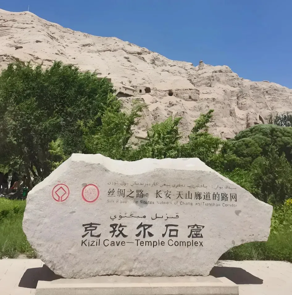 ● 克孜尔千佛洞(又称克孜尔石窟)是中国开凿最早、规模最大的佛教石窟群之一,位于新疆拜城县克孜尔乡的明屋塔格山崖。石窟始建于公元3世纪末至4世纪初,比敦煌莫高窟早约300年。现存编号洞窟236个,壁画约1万平方米,是古龟兹国佛教艺术的巅峰遗存。1961年列入首批全国重点文保单位,2014年作为"丝绸之路:长安-天山廊道路网"遗址点入选《世界遗产名录》。