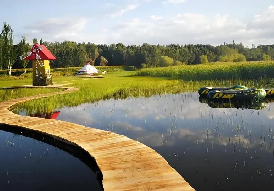 十景:包含空中栈道(俯瞰湿地全景)、九曲漂流、根雕广场、水上迷宫等特色景点。