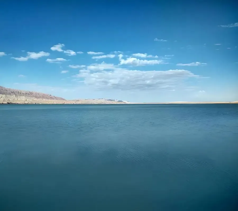 自然景观:湖面开阔,最深处约40米,周边环绕雅丹地貌与峡谷风光;