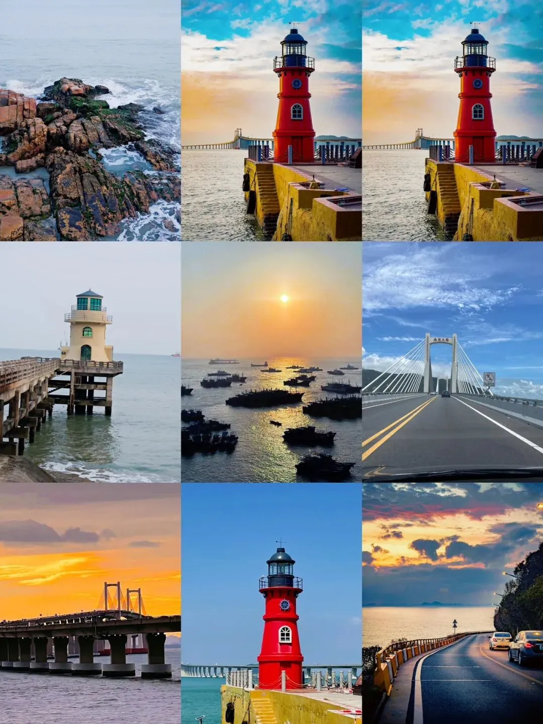 ◦ 上午:长山尾灯塔(红塔配南澳大桥,拍日落绝佳)→启航广场打卡。