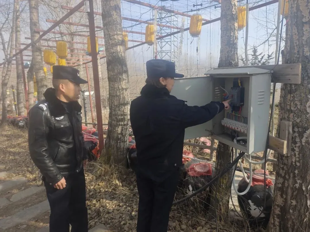 此次检查聚焦景区开园运营关键环节,采取“实地勘查+现场测试”的方式,重点排查景区主体责任落实、设施设备运维、景区安防措施落实、食品安全保障等关键内容。在消防安全方面,逐一核查游客售票点、餐饮服务区、观景平台等重点区域消防栓、灭火器等设施的配备数量、摆放位置及完好有效性,仔细检查疏散通道、安全出口是否畅通,景区灯展电路铺设是否规范等。在设施安全领域,对景区游览步道、防护护栏、观光设施等进行全面检测,查看是否存在松动、破损等问题,确保防护措施达标;仔细检查景区公共视频监控系统的覆盖范围和运行状况,确保关键区域无监控盲区,数据存储符合规定要求。在治安防控方面,重点检查景区安检设备配备、安保人员在岗值守情况。同时,针对景区内餐饮等配套经营场所,核查从业人员健康证明,检查食品存储、加工流程是否符合卫生标准。检查过程中,民辅警还结合典型案例,向景区工作人员开展消防安全、反诈防骗、应急处置等知识宣传,提升从业人员安全防范意识和应急处置能力。对排查中发现的问题,民辅警当场下达整改意见,要求景区立行立改,及时消除安全隐患,全力为游客营造安全、舒适的冬游环境。