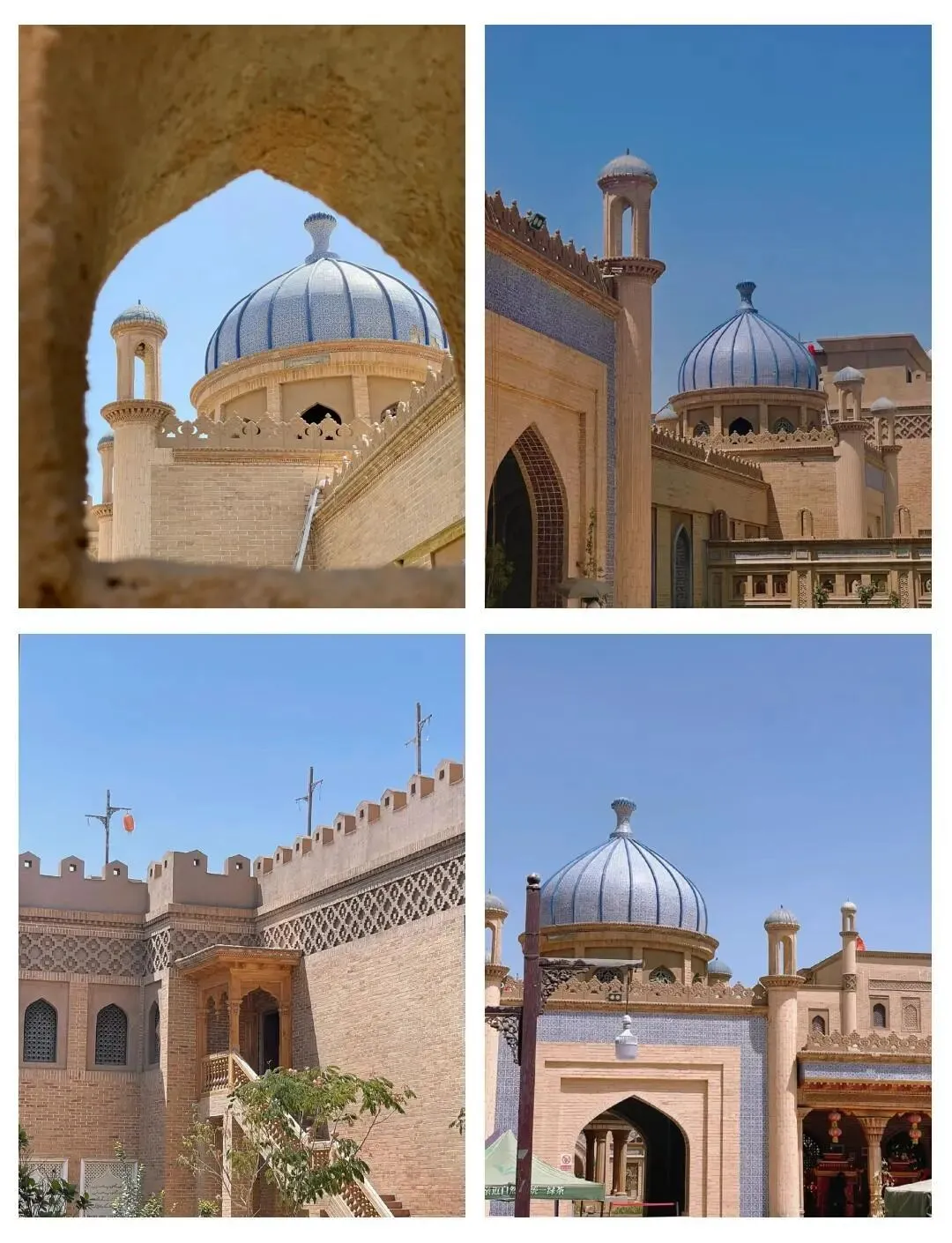 建筑特色以伊斯兰风格建筑,砖砌墓群装饰石膏花纹、铭文花砖及琉璃砖大门,前方插彩旗,具宗教庄严感。