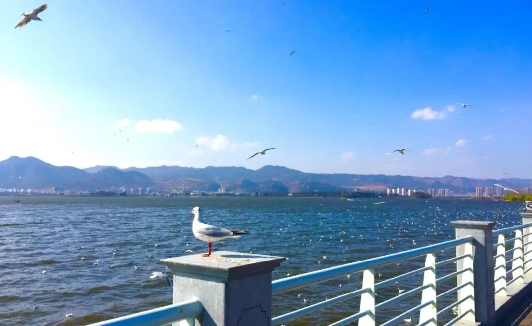06 海埂大坝 海埂大坝,位于云南省昆明市西山区观景路,毗邻滇池,全长2.8千米,属全天候免费开放景区。该地以冬季观赏西伯利亚迁徙红嘴鸥著称,游客可投喂互动,周边设有粉杜鹃花带及便利停车区域,乘坐171路、183路公交车可直达。1985年起红嘴鸥每年定期栖息于此,形成独特人文景观,冬春季节假日游客日峰值达10万余人次 。