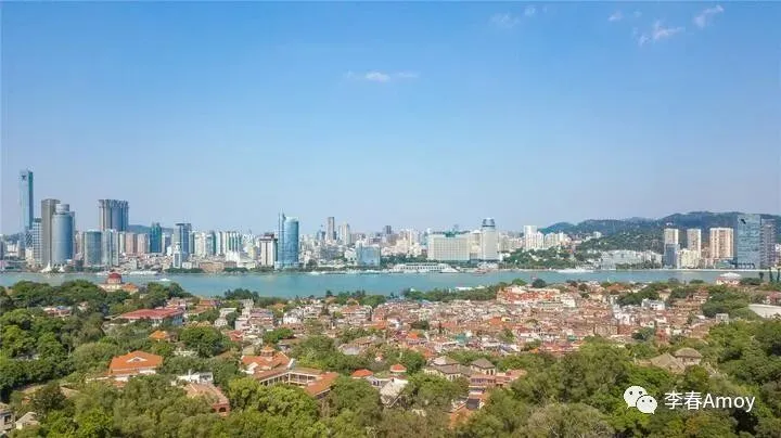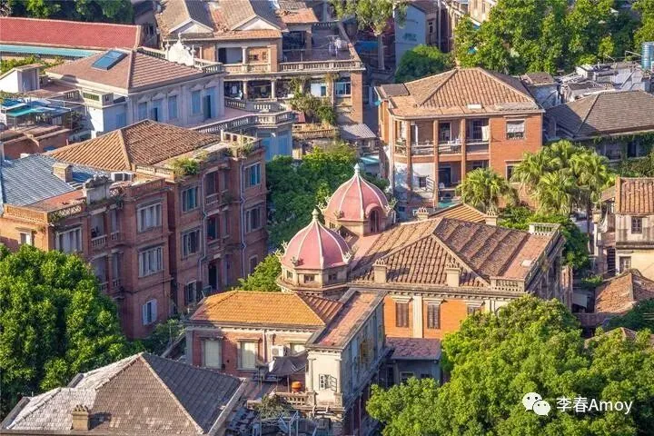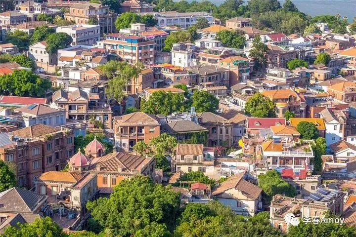 登顶之后,可以将鼓浪屿的美景尽收眼底,近处的房屋在风雨的洗礼下,已经逐渐褪色,一砖一瓦皆将百年光阴娓娓道来,让人忍不住进行航拍,从航拍图中可以看出,鼓浪屿的建筑被绿植紧紧包围,整个鼓浪屿宛若一个天然的氧吧,一片绿意盎然。
