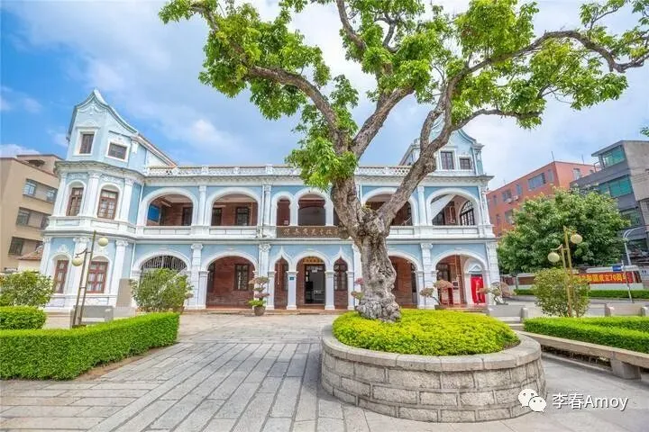 移步来到陈嘉庚先生故居,一座精致的小洋楼映入眼帘,蓝白相间的墙壁尽显典雅之风,将陈嘉庚先生的品位诠释得淋漓尽致。小洋楼前摆放着许多盆景,营造出一种欣欣向荣之感,即便伟人已逝,精神依旧屹立不倒。