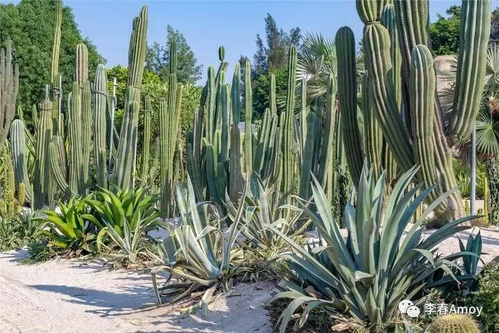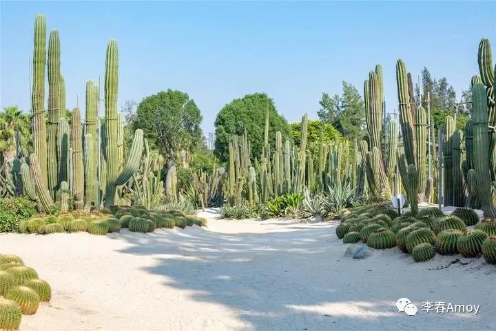 植物园内景点众多,由于时间有限,我们一路乘坐游览车,直奔雨林世界和多肉植物区。早就听说多肉植物区震撼人心,今日一见,果然名不虚传,各类仙人掌、芦荟长成参天模样,仿佛被镜头放大了一般,让人大开眼界,相比之下,我们平日见的多肉植物,简直是沧海一粟。圆鼓鼓的仙人球十分可爱,与黄色的沙地相互碰撞,行走在多肉植物区,完全找不出第三种颜色,放眼望去,除了脚下泛黄的沙地,几乎满眼的绿色,无疑是最佳洗眼睛之地。