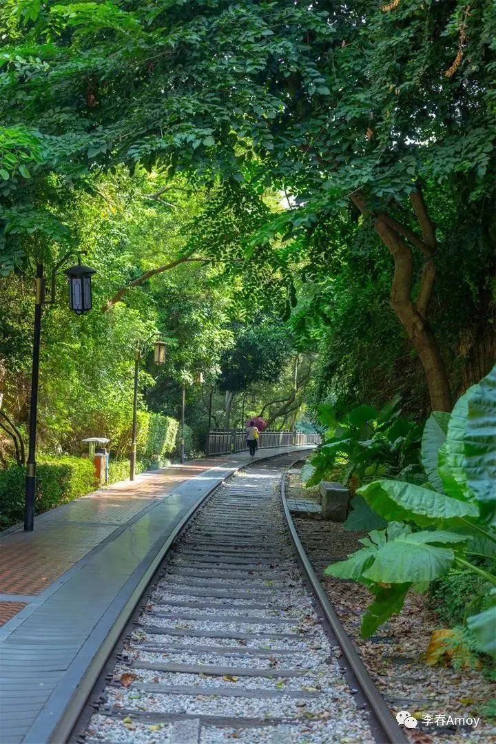 沿着铁轨缓缓前进,感受沙石挤压脚底的欢快,一路上绿树掩映,仿佛与世隔绝一般,安全感受不到外界的炎热。一旁的芭蕉叶格外争宠,总是时不时的探出头来,试图刷一波存在感,偌大的叶子随风摆动,为过往的游人带来一丝凉爽。