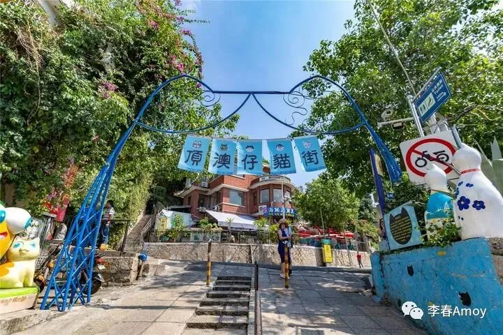 顶澳仔猫街位于厦门大学附近,是一条藏匿于小巷子的主题街道,初闻其名,便觉得兴致勃勃,这个古灵精怪的名字,瞬间点燃了我的全部热情,加上“猫”一字深入人心,让铲屎官们毫无抵抗力。猫街的开放时间为早上十点到晚上十一点,每到节假日,这里总是人头攒动,好在今天是工作日,才得以独享片刻宁静。