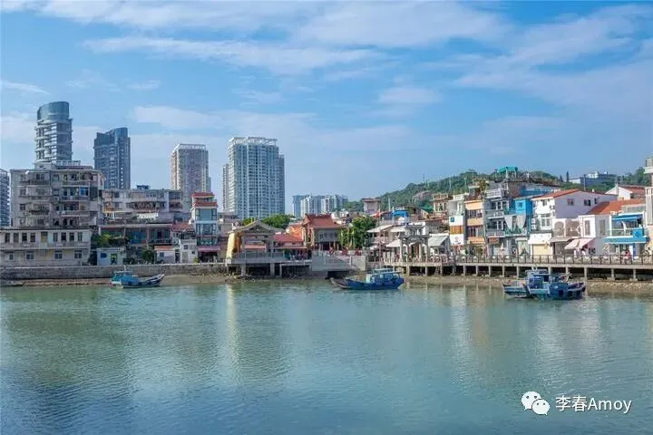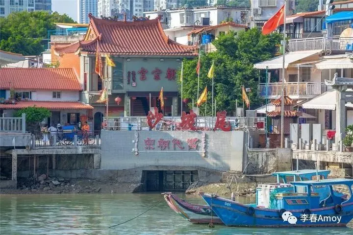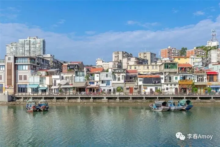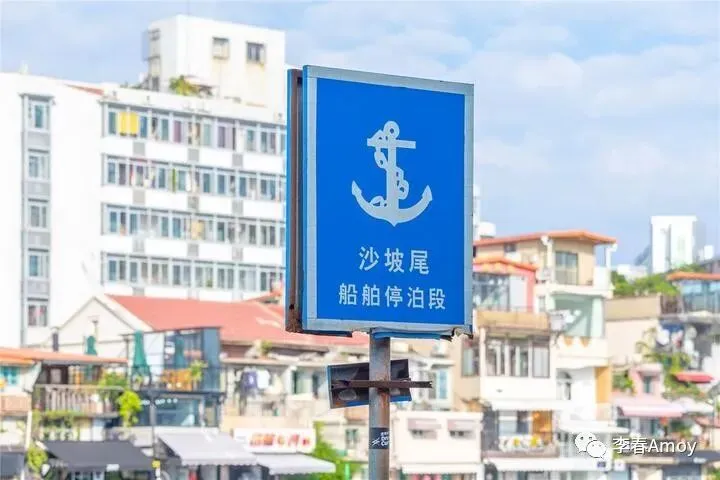 一路走走停停,不知不觉来到了厦港海洋文化展示厅前,在这里,可以将避风港对岸的全景一览无遗,各式各样的居民房构成一幅和谐的风景画,靠岸的渔船三两成群,碧蓝的海面波光粼粼,偶见居民房的倒影若隐若现,浓浓的生活气息扑面而来。