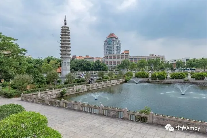 移步来到水池旁,站在此处,可以将厦门大学的美景尽收眼底,伴随一缕清风,香火气息传递千家万户,最后全部融进这一汪池水之中,恬静而美好。