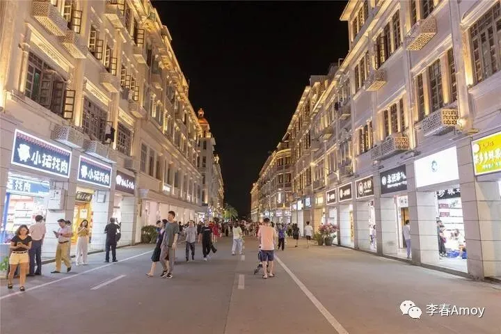 直到天色渐晚,我们才移步来到中山路步行街,如果说八市带我真正走进厦门的市井生活,那么中山路步行街则在向世人展现厦门如今的风采。步行街两旁商铺林立,各大品牌应有尽有,其中不乏许多特色美食的身影,还是各式各样的特产,都在向游人展示厦门的盛世繁华。两侧的建筑采用统一的白墙设计,宽阔的街道引领大家走向康庄大道,穿梭其中,竟有种置身罗马之感,暖黄的灯光营造出视觉的错感,有种恍然一梦之感。