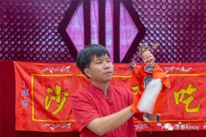 除此之外,这里还遗留着这样一道亮丽的风景线,一位表演者身穿红衣,双手操纵木偶,演绎各式各样的艺术形象,据说这是闽南布袋戏,如今已被列入国家非物质文化遗产,让人忍不住驻足一番。