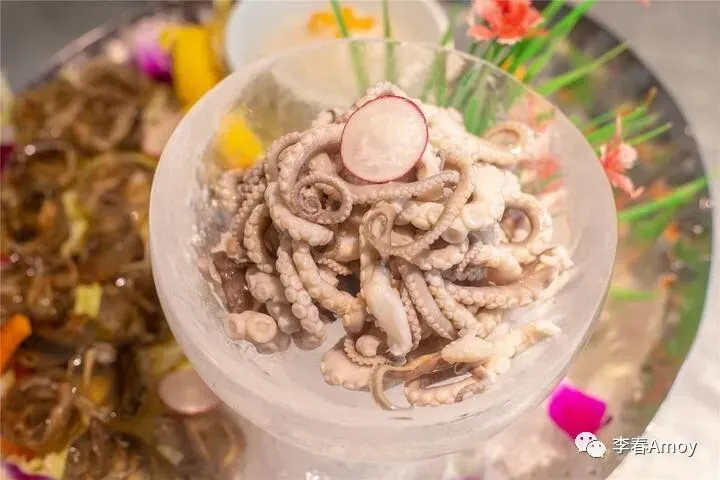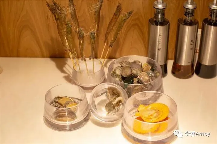 来到这里,必不可少的便是来一份海鲜灯塔,满足你对海鲜的所有向往。灯塔的顶部是一排活虾,下面的透明罐子里,则分别装着鲍鱼、扇贝、花蛤、活章鱼等四种食材,看着章鱼大哥在罐子里蠕动,竟有些不忍心将其下锅。
