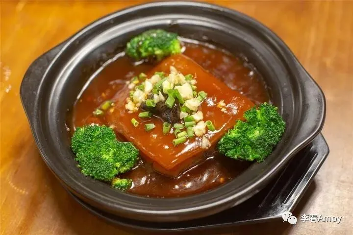 同安封肉是厦门的一大特色美食,做法十分复杂,在外地很难吃到正宗口味,酱色的汤汁将肉块浸染,在葱末和西蓝花的点缀下,显得更加有食欲,细细咬一口,肥瘦相间,入口即化,光是看着如此诱人的色泽,就让人毫无抵抗力。