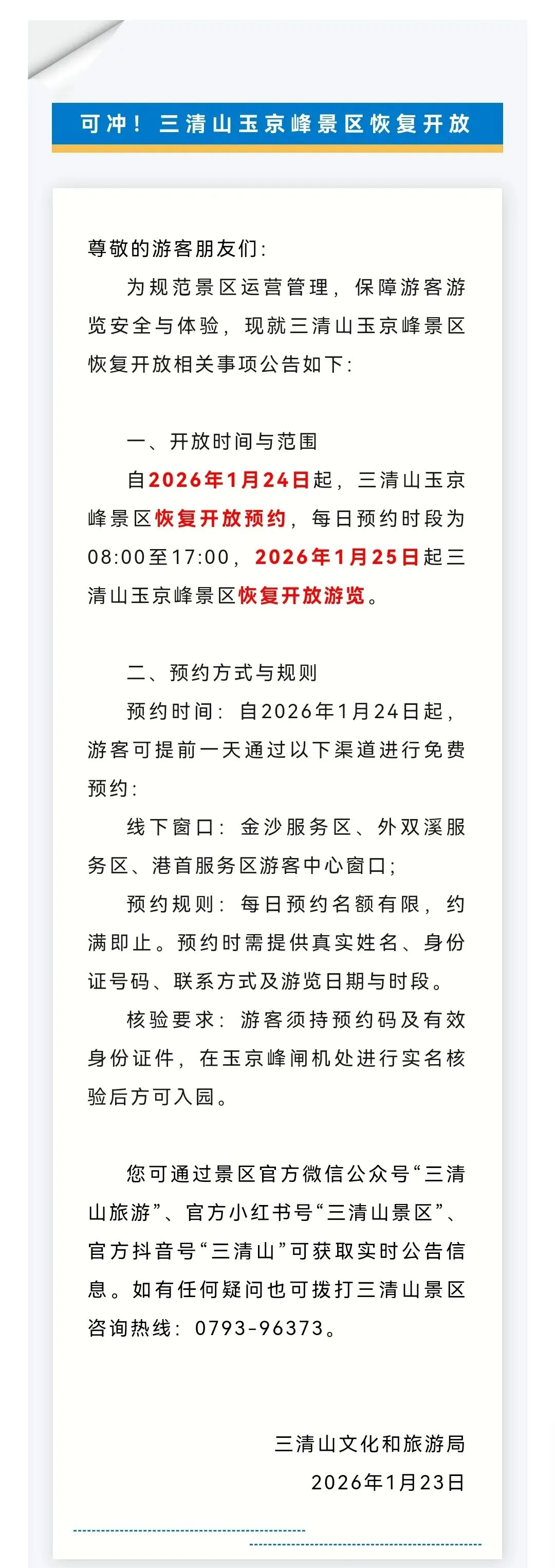 可冲,上饶一景区恢复开放!