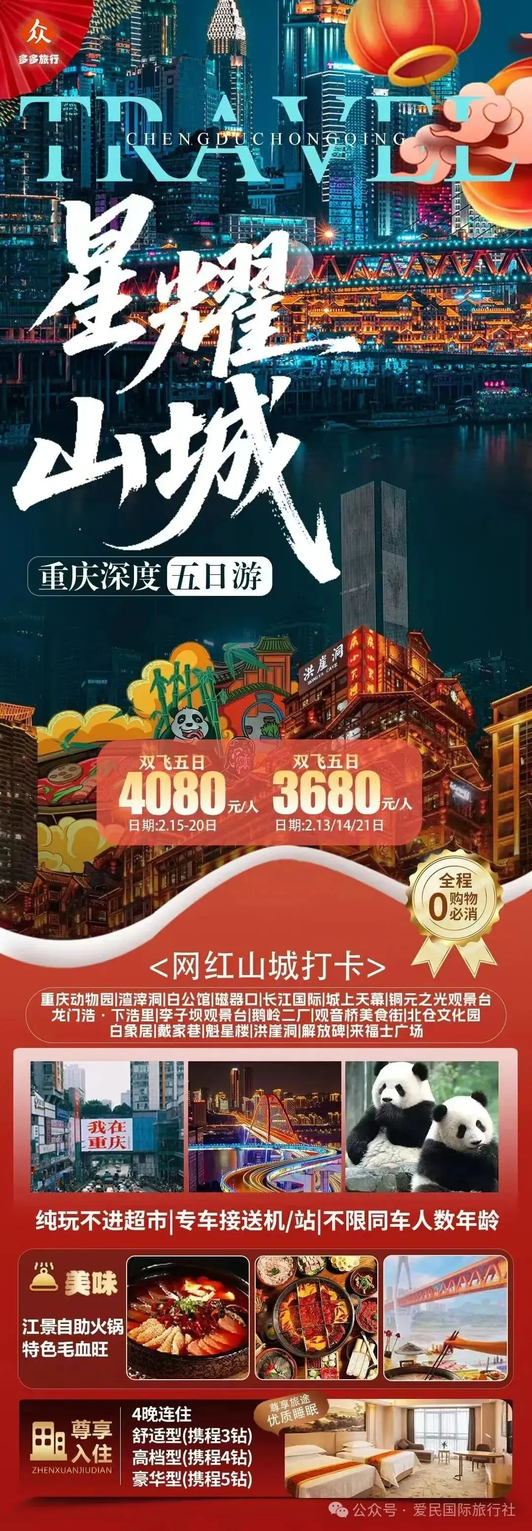 🌺🌺🌺【星耀山城】纯玩5日🌺🌺🌺