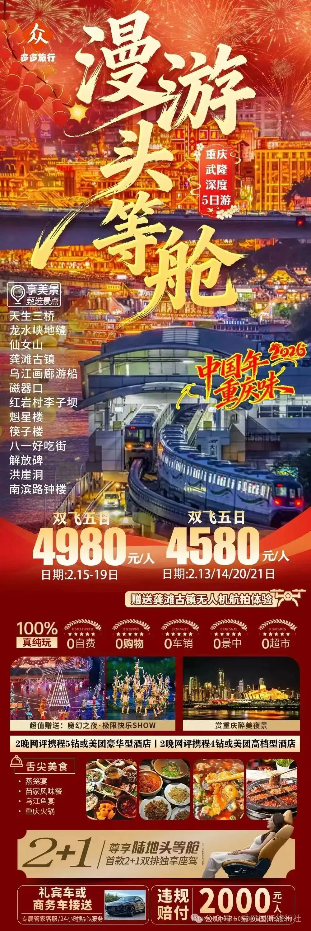 🏮【漫游头等舱】重庆+武隆真纯玩5日游