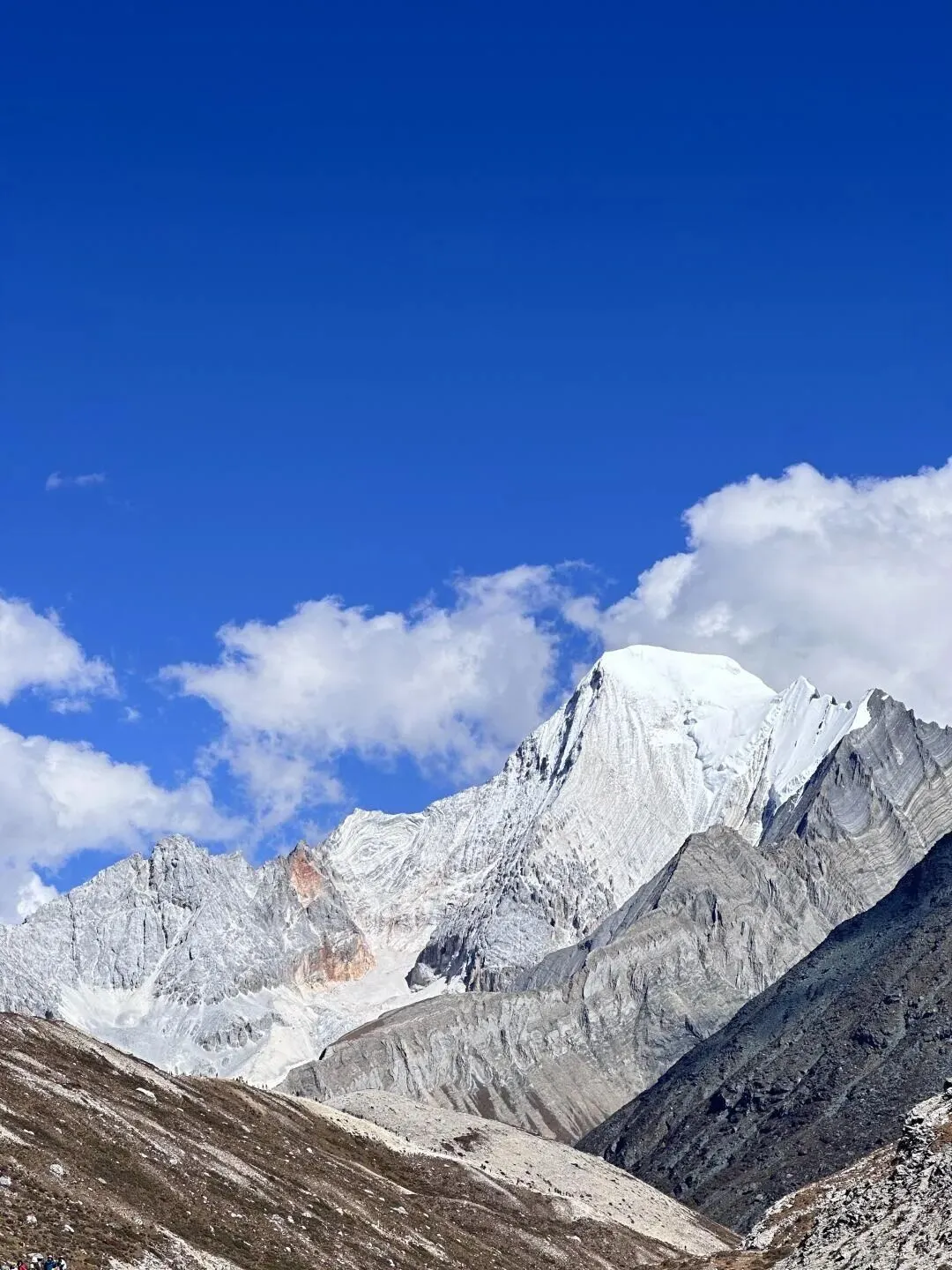 从你的.全世界路过,最后停在.这里。洛绒牛场的.草甸黄绿相间.,三座神山就.杵在.眼前,雪顶.在云里若隐若现。走去牛奶海的那段路,海拔接近四千七,走几步.就得.喘,.但.看.到那一汪湛蓝的湖水时,连喘气都忘了.。