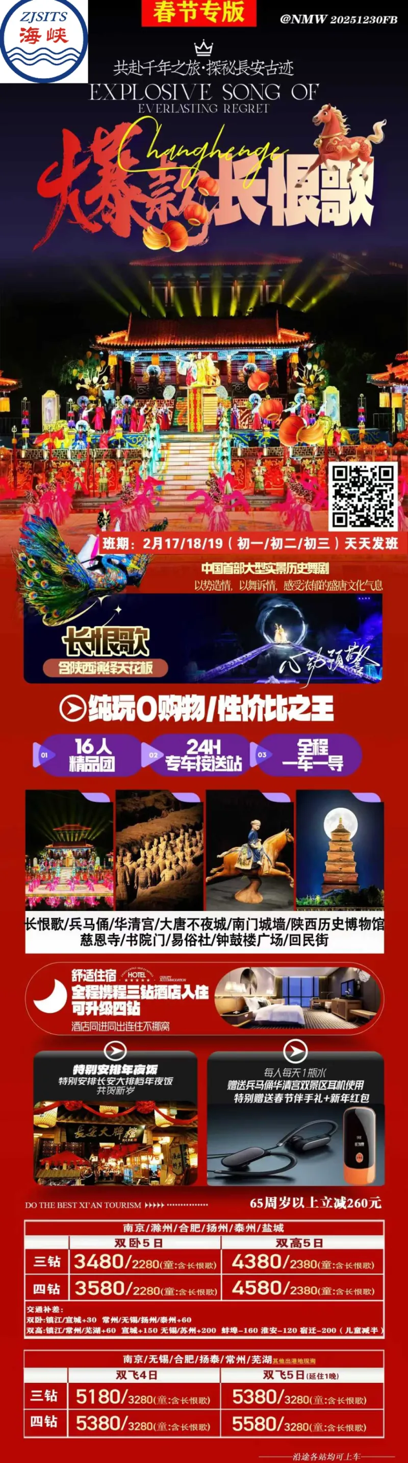 🎁超值特色体验:赠送长恨歌表演、长安大排档年夜饭、24h专车接送机/站