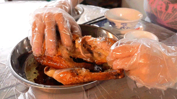 鸡皮焦脆而清香,色泽金黄,将一只鸡腿拔下来,看里面的肉都冒着汁水,连皮带肉吃一口,焦香与肉香在口腔里融合,鸡肉嫩滑有味,真真让人回味无穷!