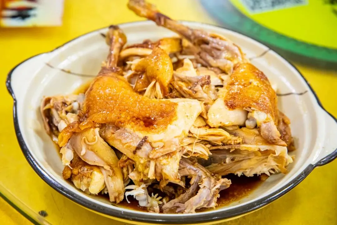 博罗罗浮山土窑鸡以传统的制作手法,结合独特的调味秘方,配以千年古法在600℃高温窑制,皮脆肉嫩、汁多爽滑而闻名,是一道非常经典的惠州客家菜。