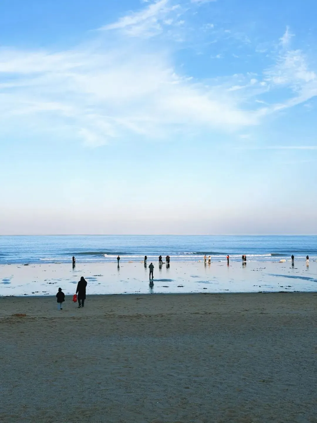 当我们踏入连岛大沙湾,便仿佛进入了一个冬日的梦幻世界。这澄澈的蓝与金黄的沙相互映衬,构成了一幅绝美的自然画卷,为整个冬日增添了一抹别样的色彩。