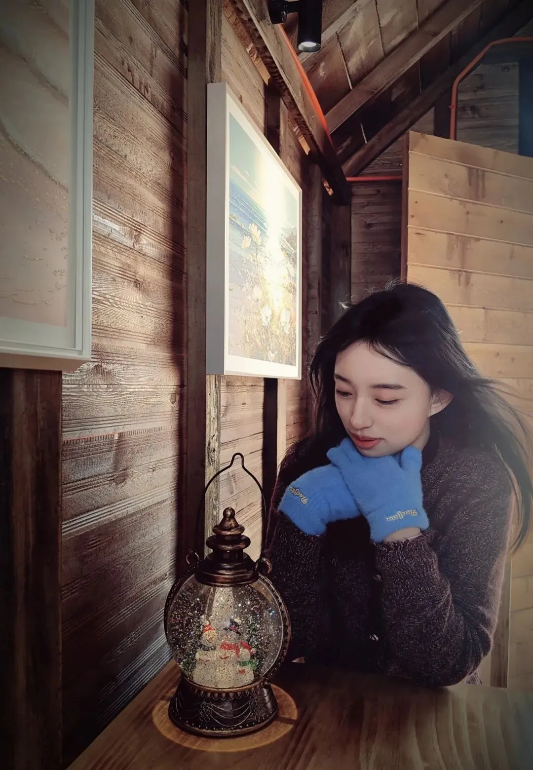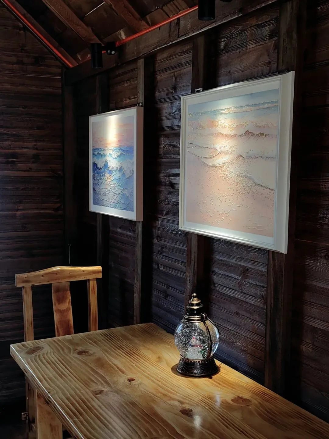走进木屋内部,更是别有一番洞天。木质墙面挂着海景艺术画,让我们仿佛置身于大海之中。
