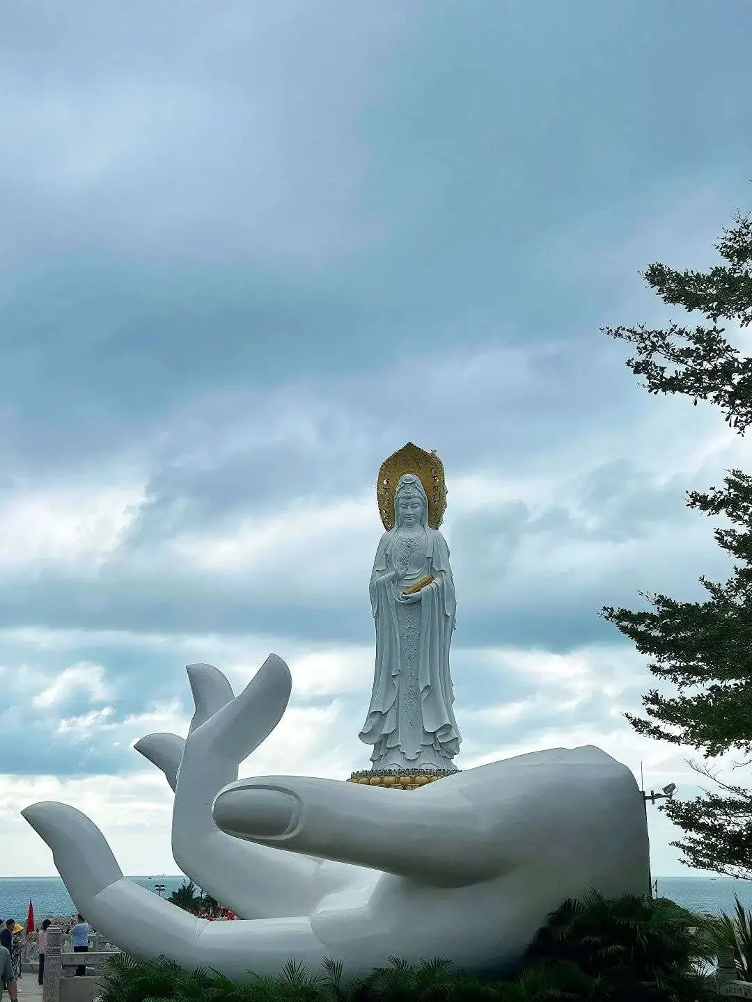 海上观音像特.别高,走近了看更觉.得.宁静。.景区里有电瓶车,不用走太多路。.椰子.树下海风吹着,不.热。我妈在“.寿比南山”石.刻.前,站了好久让.我拍照。