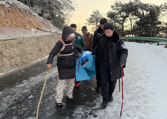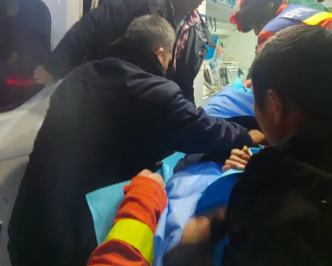 民辅警和救援人员前拉后推、肩扛手抬,轮换位置,历时两个小时,终于将伤者安全转运至山下路面。增援队伍赶紧接应,早已等候的救护车迅速将伤者送往医院救治,获救游客忍着疼痛,向满身泥雪的民警挥手致意,表达深深感激。