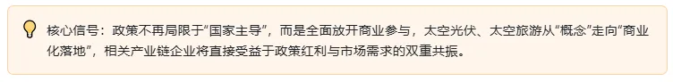 近期政策密集落地,为太空光伏、太空旅游筑牢发展根基,核心政策梳理如下,精准把握政策红利: