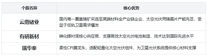 1. 上游材料:太空光伏核心耗材,技术壁垒高,资源稀缺性突出,直接支撑光伏组件制造