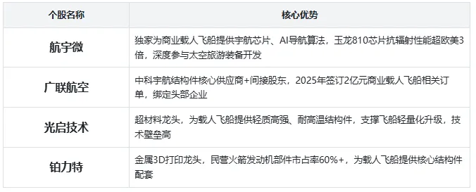 4. 资本与配套:为太空旅游产业提供资金支持,布局核心企业股权,间接受益赛道爆发