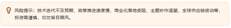 长期:随着可回收火箭技术成熟(降低发射成本)、钙钛矿技术落地(降低电池成本),太空光伏将实现规模化部署,预计2030年市场规模迈入万亿级,产业链各环节均有长期成长空间,优先布局技术壁垒高、绑定国家队的企业。