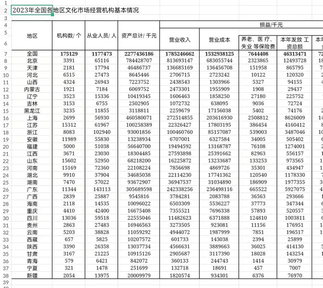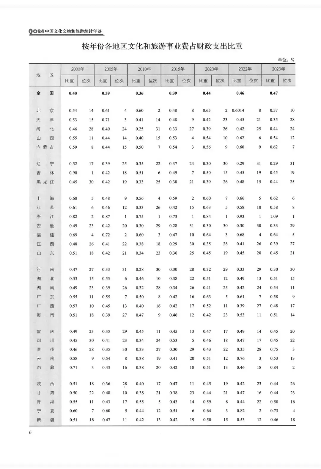 一、数据概况 2018年,为适应国家机构改革以及主管单位文化和旅游部要求,《中国旅游年鉴》改版为《中国文化和旅游年鉴》;2020年改版为《中国文化文物与旅游统计年鉴》。 《中国文化文物和旅游统计年鉴 2023》系统收录了全国和各省、自治区、直辖市 2022 年文化和旅游发展各方面的统计数据,以及其他重要历史年份的统计数据,是一部全面反映我国文化建设和旅游发展情况的综合性统计资料。 本年鉴正文内容共分为九个部分:一、综合;二、公共图书馆;三、群众文化;四、艺术;五、旅游;六、文化市场;七、文物;八、教育、科技、动漫及其他;附录资料。为方便读者使用,多数篇末附有《主要统计指标解释》。 数据名称:中国旅游统计年鉴、中国文化文物和旅游统计年鉴(1992-2024)全套文件情况:包含全国、省指标出版年份:1992-2024全年份均为(excel + pdf)