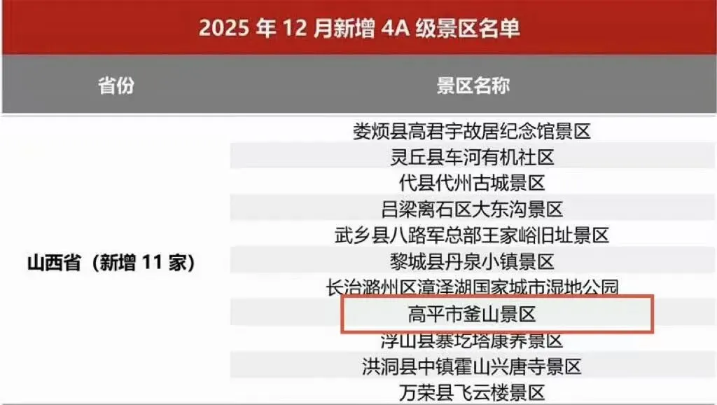 2025年12月4A级景区