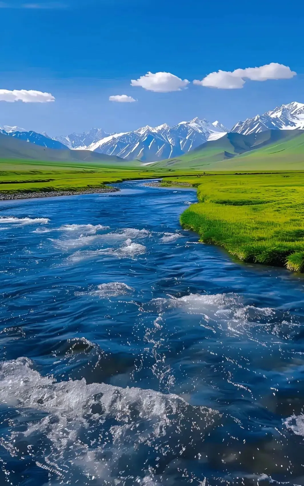 赛里木湖被誉为“大西洋的最后一滴眼泪”,湖水清澈碧蓝,与周围的雪山、草原相映成趣。不同的季节和时段,赛里木湖都展现出不同的美。清晨,看着太阳从湖面升起,金色的光芒洒在冰面上,闪耀着迷人的光彩;傍晚,余晖映照下的赛湖如梦如幻;冬季,玉湖那神秘的蓝冰,仿佛是大自然雕琢的艺术品。
