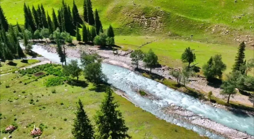河谷两侧山峦起伏,草原如绿毯般铺展,溪流潺潺,在这里徒步,呼吸着清新的空气,感受着微风拂面,别提多惬意了。