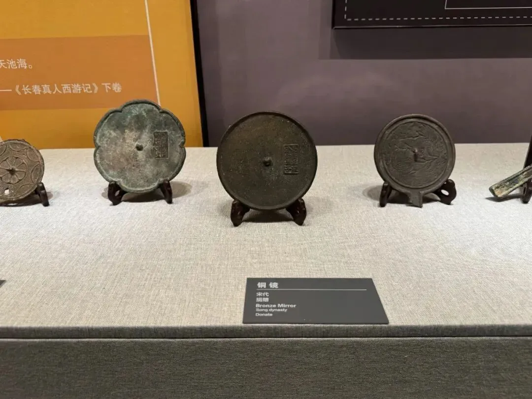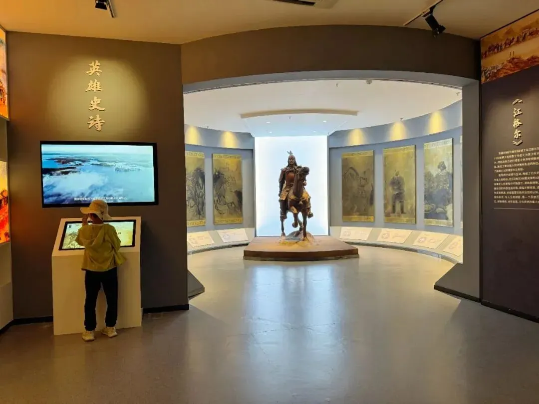 馆内文物藏品3000余件,其中国家一级文物6件,具有鲜明地域特色。镇馆之宝汉代金饰件,长方形玉石包金,搭配金链串起的玛瑙和绿松石,尽显浓郁游牧民族特色。还有金代金缠枝纹铜镜、明代三面八臂铜鎏金药师佛像、红陶大瓮、元代金手镯、金腰带等一级文物。不少文物出土自宋元时期西域重镇达勒特古城,见证着当地的历史变迁。此外,因地处丝绸之路要冲,馆内也有不少异域特色文物。