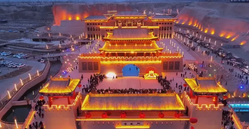 加依村民宅与景区核心区,突出了西域出土建筑古朴粗狂的特色,同时具典型南疆维吾尔族民居的建筑传统。特别是主展区,既有西域城堡的森严威武,又有汉唐大风遗韵,吸取了古代龟兹造窟艺术,彰显了龟兹石窟风貌和恢弘气势。