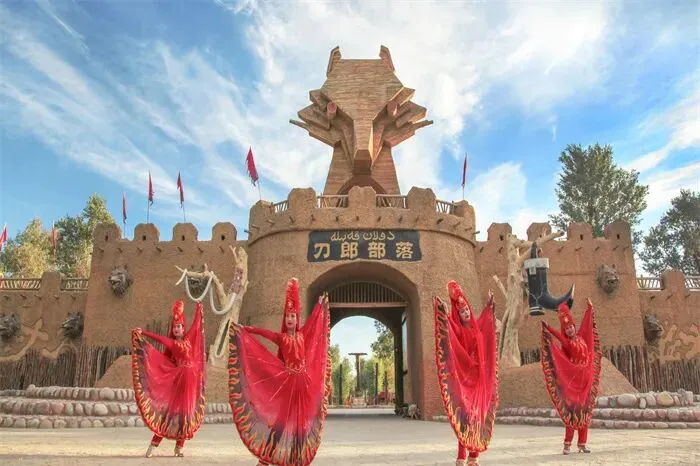 阿瓦提县刀郎部落景区,又称多浪部落,位于新疆维吾尔自治区阿克苏地区阿瓦提县玉满闸口胡杨林区,是一处以刀郎民族的民俗风情和沙漠、河流、胡杨林风光为主,集自然风光、民俗文化、休闲娱乐于一体的综合性旅游景区。景区总占地面积8000亩,长宽都近1公里,进入景区后步行游玩大约3 - 4小时为宜。