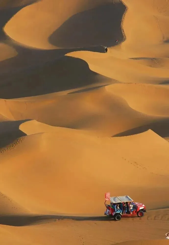 这里的旅游项目丰富多样,充满乐趣。你可以驾驶全地形沙漠越野摩托,在沙海中尽情驰骋,感受速度与激情;也能骑着骆驼,慢悠悠地穿行在沙丘之间,遥想古代丝绸之路的繁华盛景;还能体验刺激的滑沙项目,享受从沙丘顶部飞驰而下的快感。此外,景区内的网红打卡点、丝路驿站雕塑群等,为游客提供了拍照留念的绝佳场景。