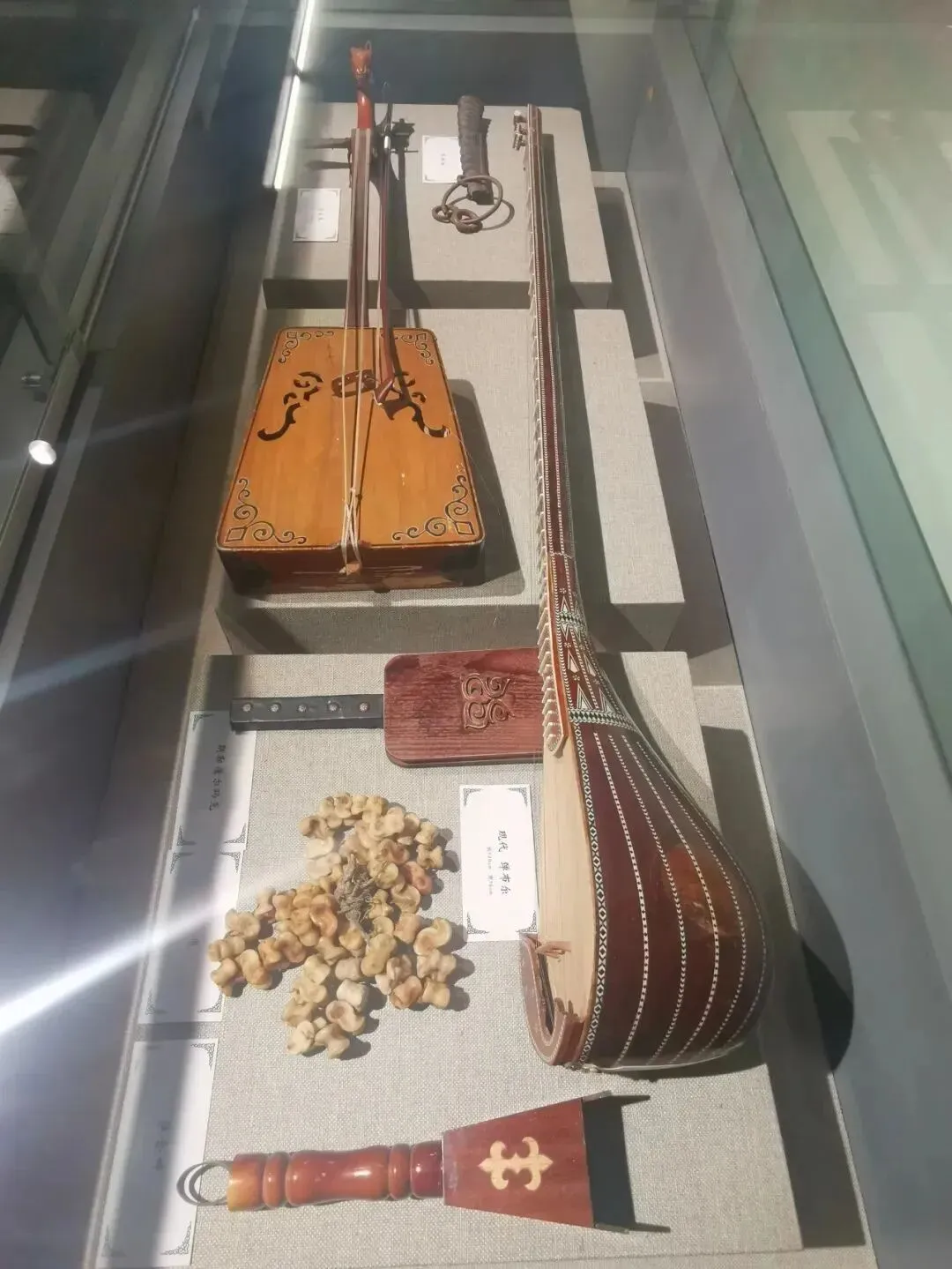 馆内文物藏品3000余件,其中国家一级文物6件,具有鲜明地域特色。镇馆之宝汉代金饰件,长方形玉石包金,搭配金链串起的玛瑙和绿松石,尽显浓郁游牧民族特色。还有金代金缠枝纹铜镜、明代三面八臂铜鎏金药师佛像、红陶大瓮、元代金手镯、金腰带等一级文物。不少文物出土自宋元时期西域重镇达勒特古城,见证着当地的历史变迁。此外,因地处丝绸之路要冲,馆内也有不少异域特色文物。
