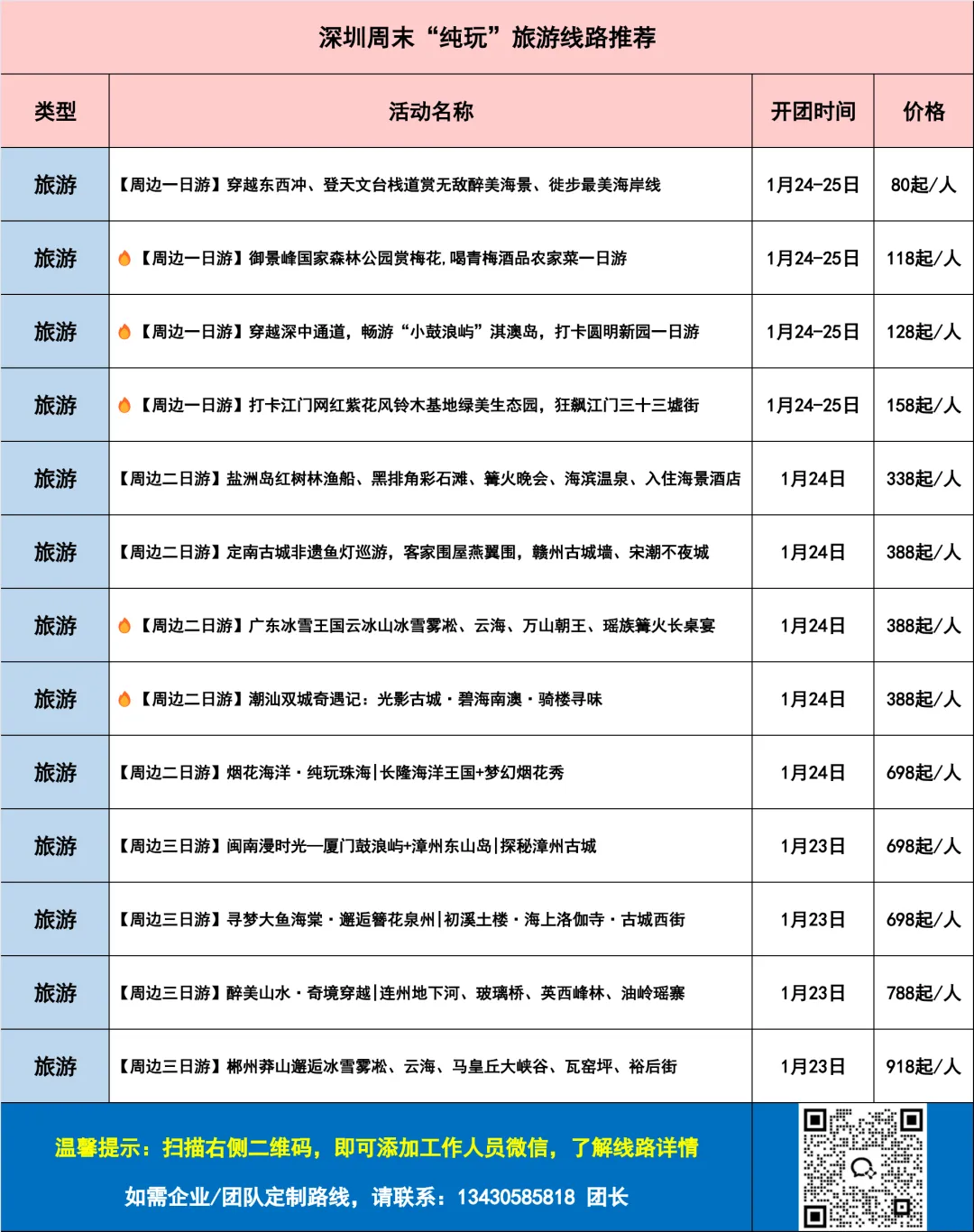 点击表格图片,长按识别图片二维码,即可添加工作人员微信,了解线路详情。
