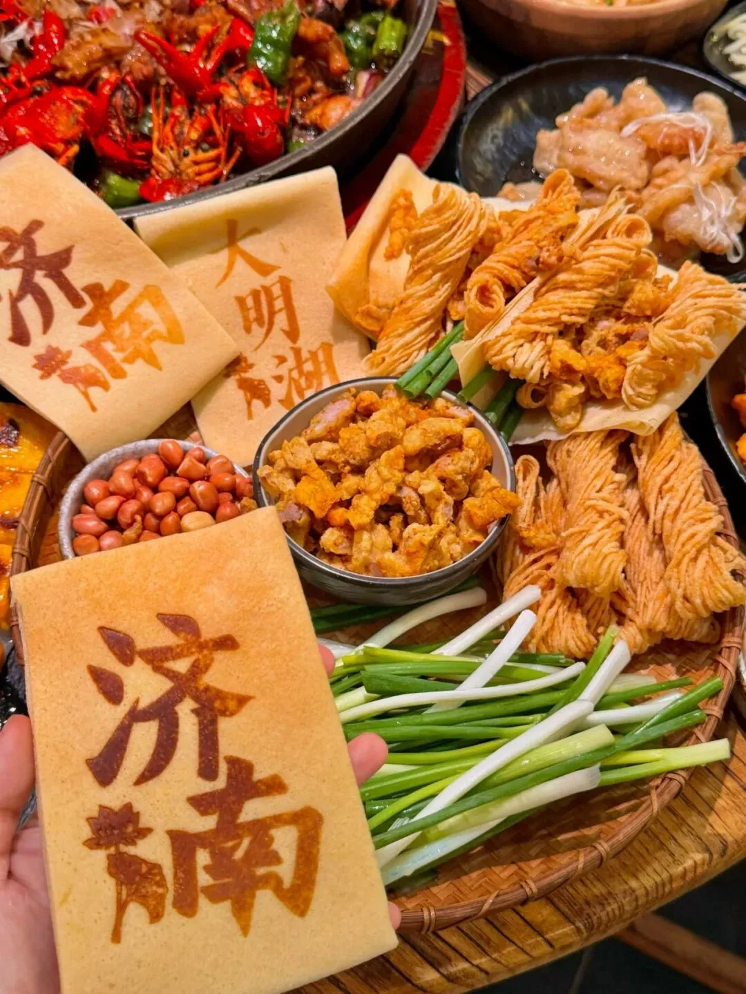 油旋:济南特色酥油烧饼,外皮酥脆,内里柔软,葱香扑鼻。推荐“油旋张”。