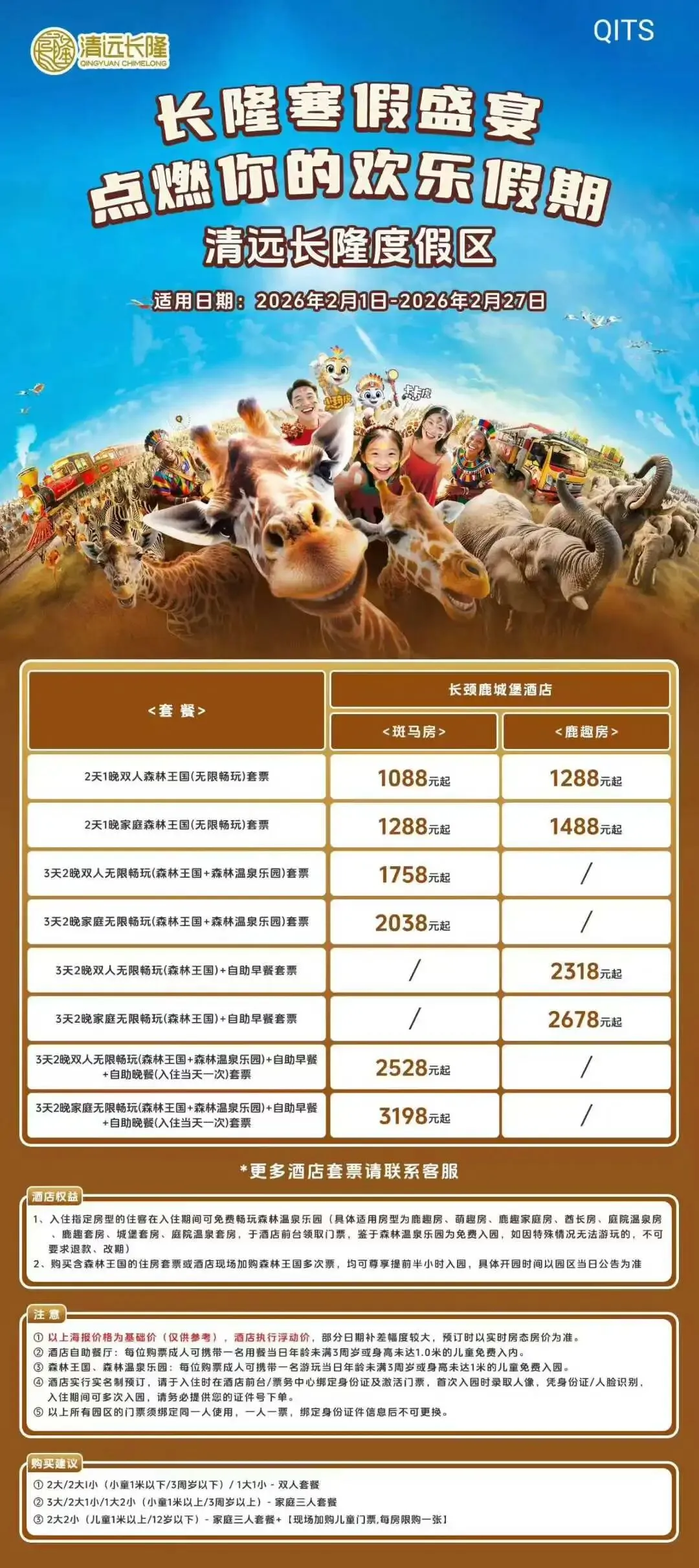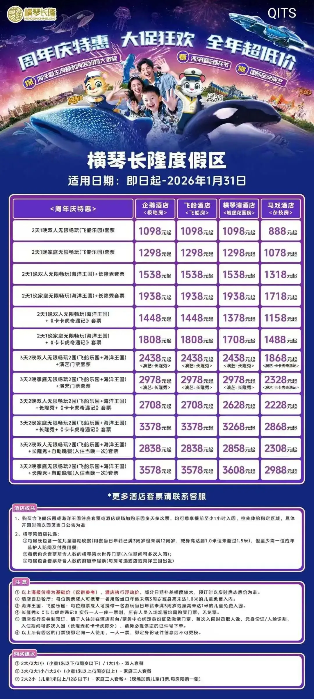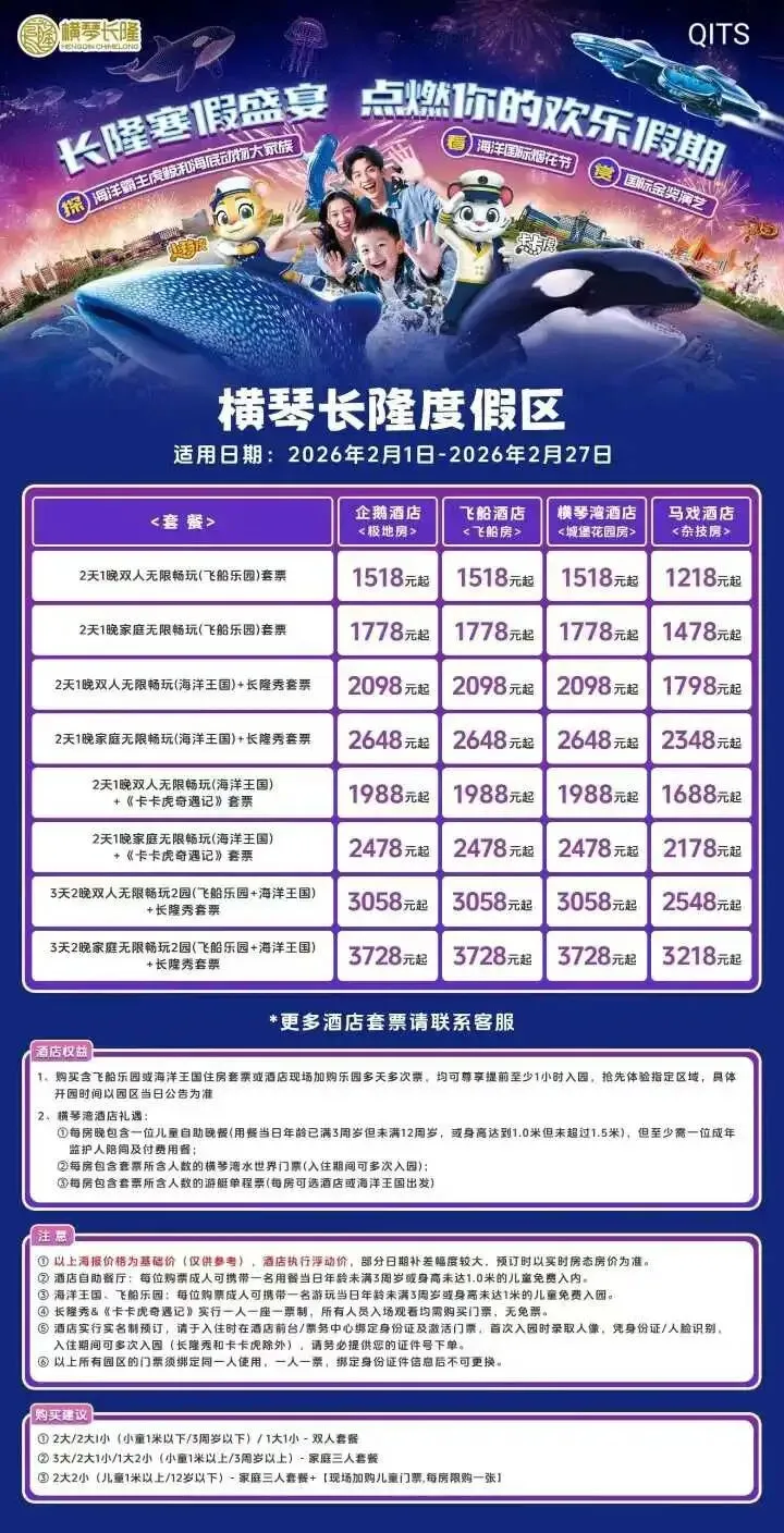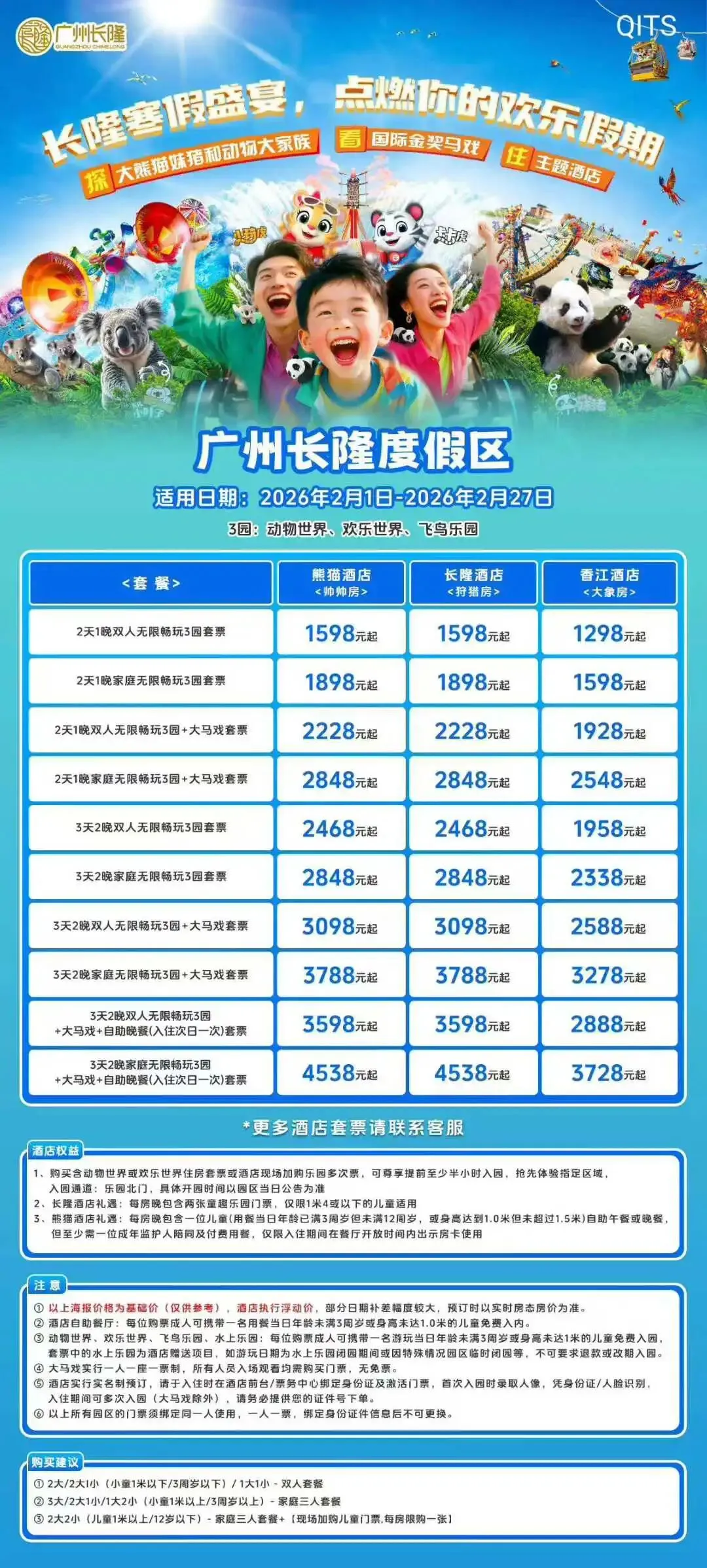 两个长隆都是含酒店的套票,广州长隆比珠海长隆贵些。广州1晚或2晚都是“畅玩三园”,但珠海1晚的是“单园”,2晚是“双园”。 淡季3月/4月/5月可能有赠早餐或升房活动,春节和寒暑假比较贵,价格变动大,建议提前买。