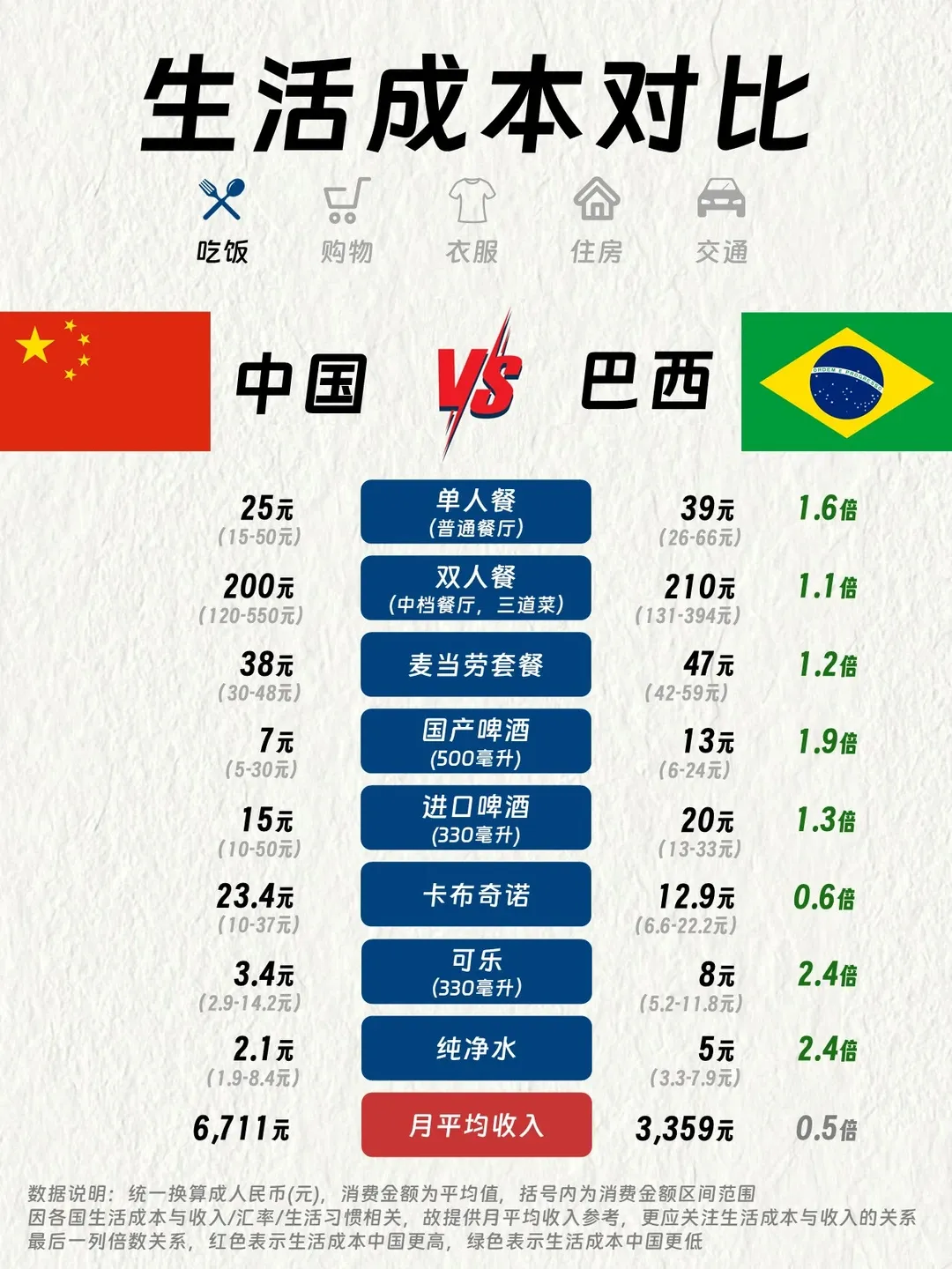货币与消费 巴西货币为雷亚尔。大城市刷卡消费较为普遍,但小城镇和市场中现金仍是首选。可使用银联卡在部分银行ATM机取现,但最好备有Visa或Mastercard信用卡。大城市外兑换货币可能不太方便。
